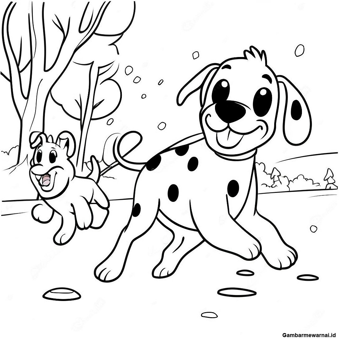 101 Dalmatians Berlari Di Salju Halaman Mewarnai