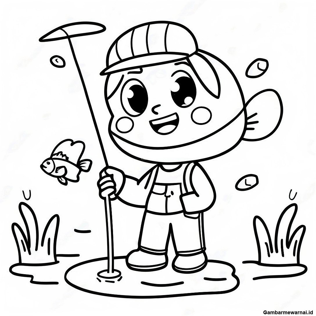 Anak Bahagia Memancing Bass Halaman Mewarnai