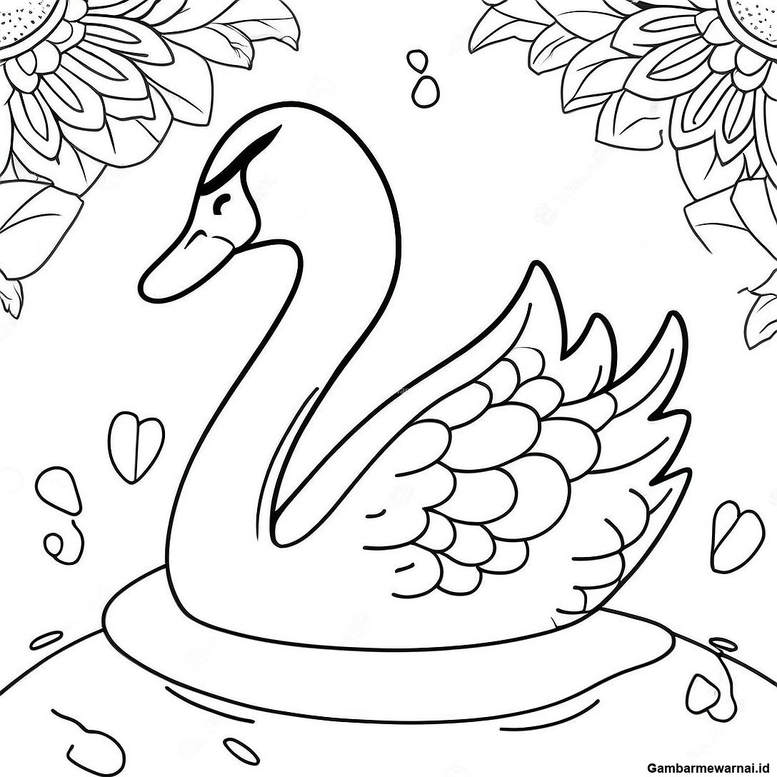 Angsa Tenang Dengan Halaman Mewarnai Bunga Teratai