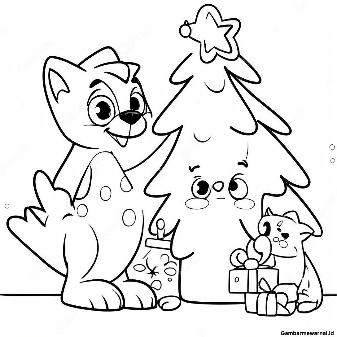 Bluey Dan Bingo Menghias Pohon Halaman Mewarnai