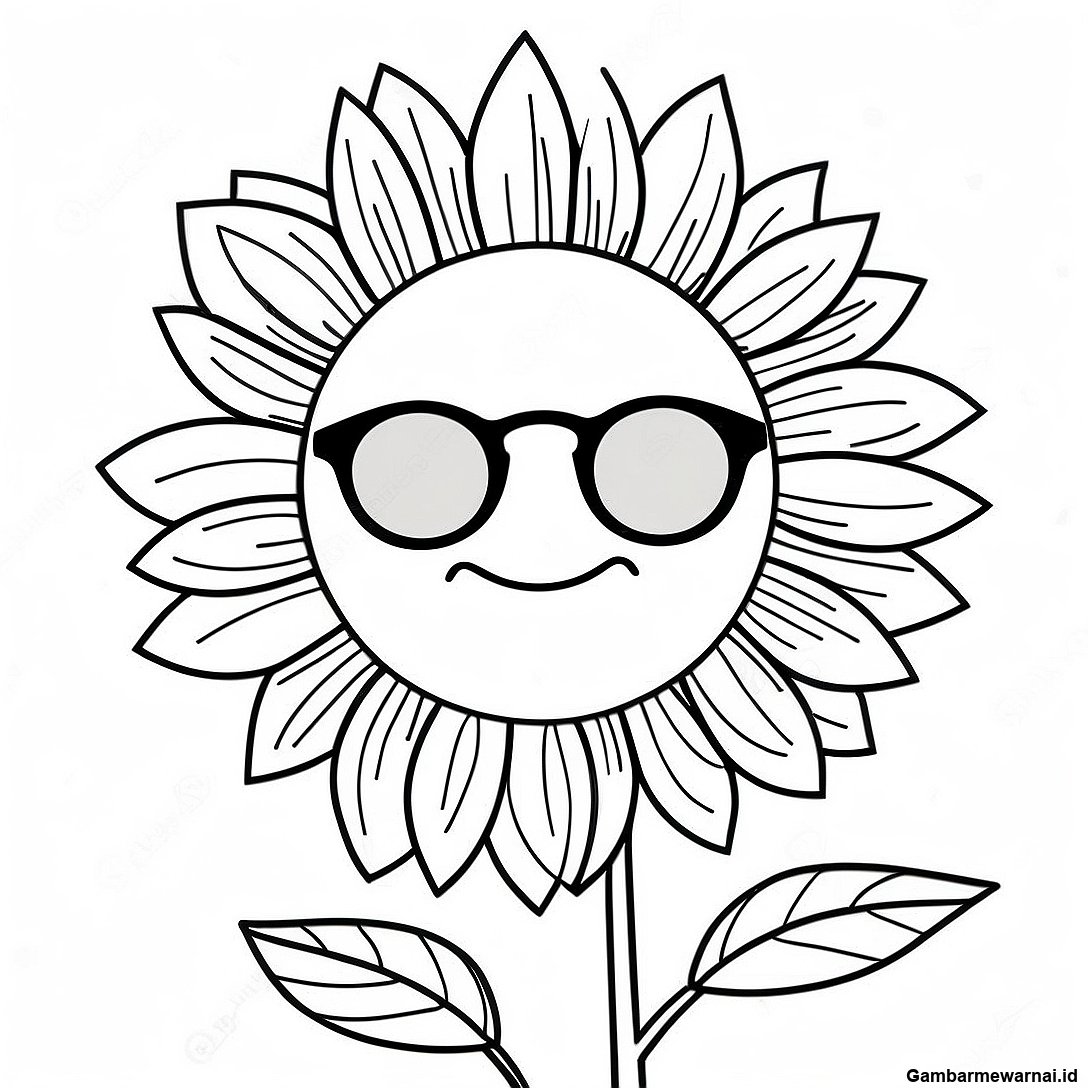 Bunga Matahari Dengan Kacamata Hitam Halaman Mewarnai