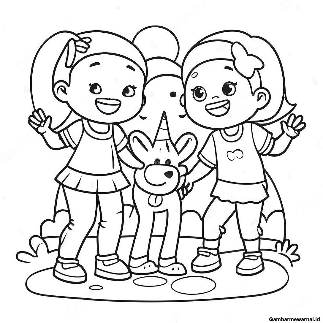 Gadis Hitam Bermain Dengan Teman Halaman Mewarnai