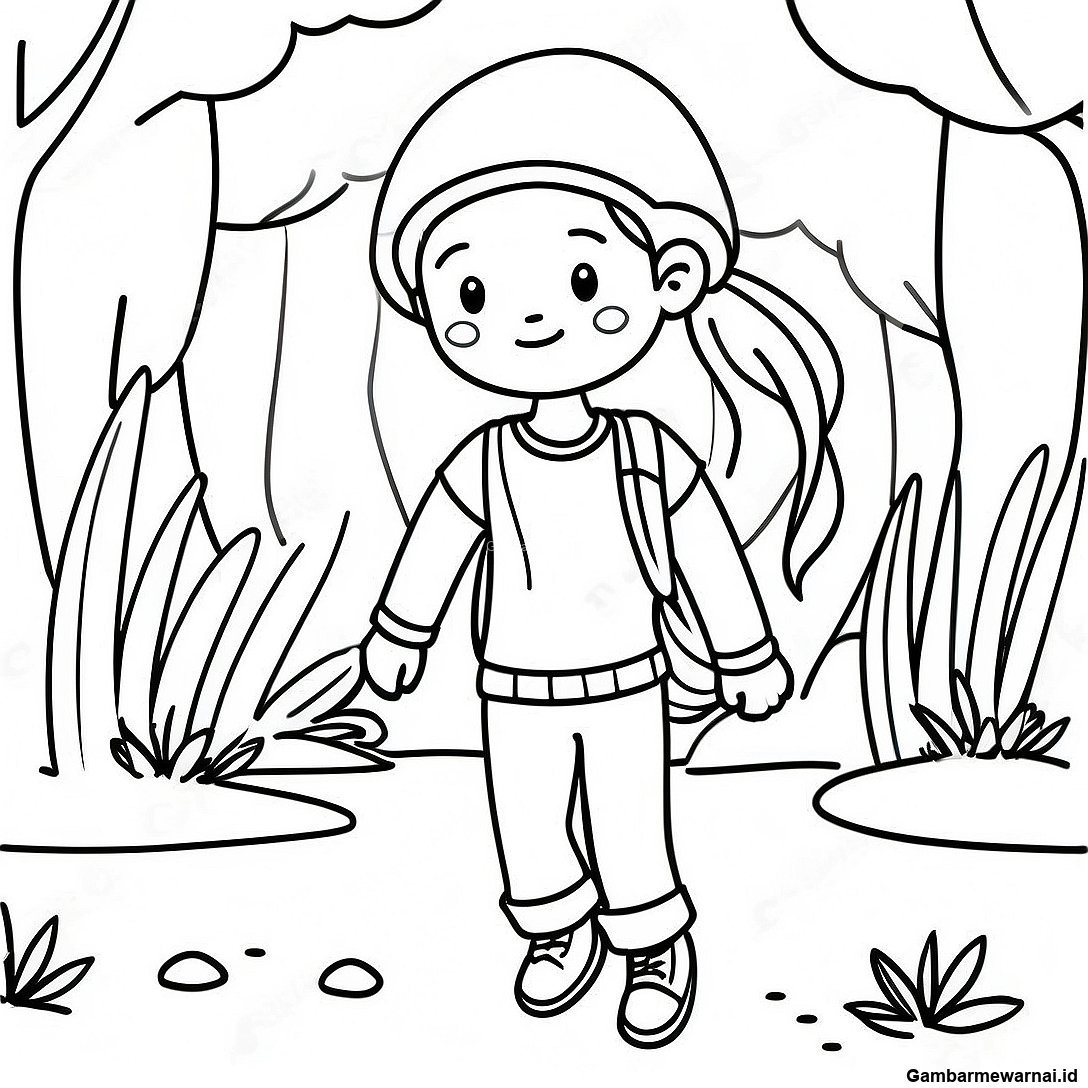 Gadis Petualang Menjelajahi Alam Halaman Mewarnai