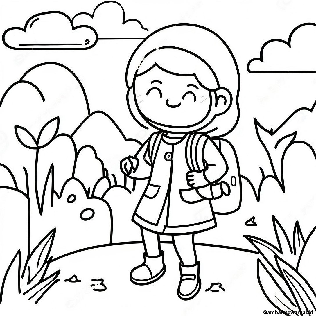 Gadis Petualang Menjelajahi Alam Halaman Mewarnai