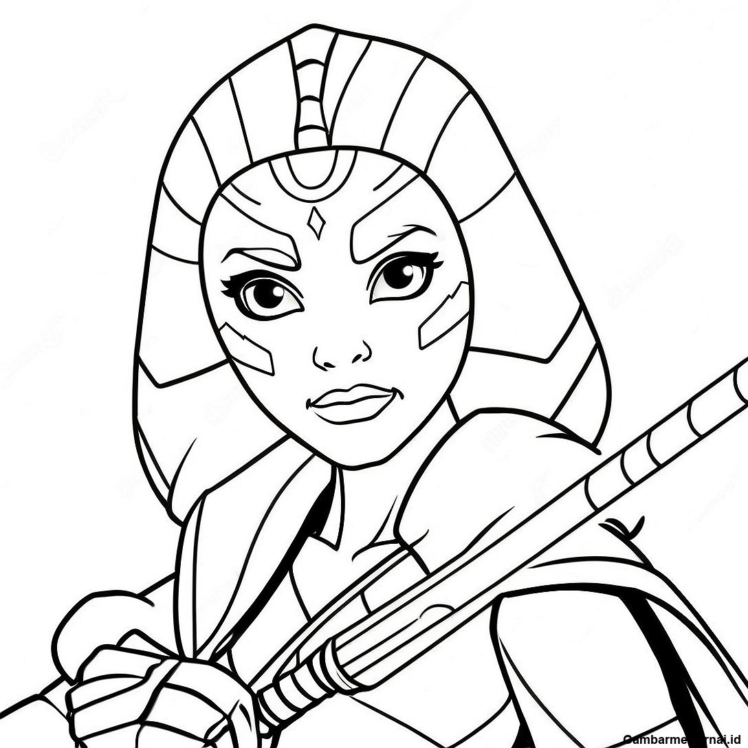 Gambar Mewarnai Ahsoka Tano Dengan Lightsaber