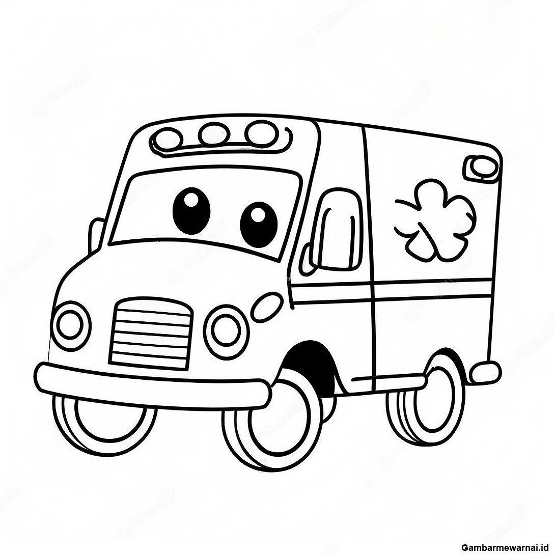 Unduh PDF yang Dapat Dicetak dari Gambar Mewarnai Ambulans Kartun Lucu