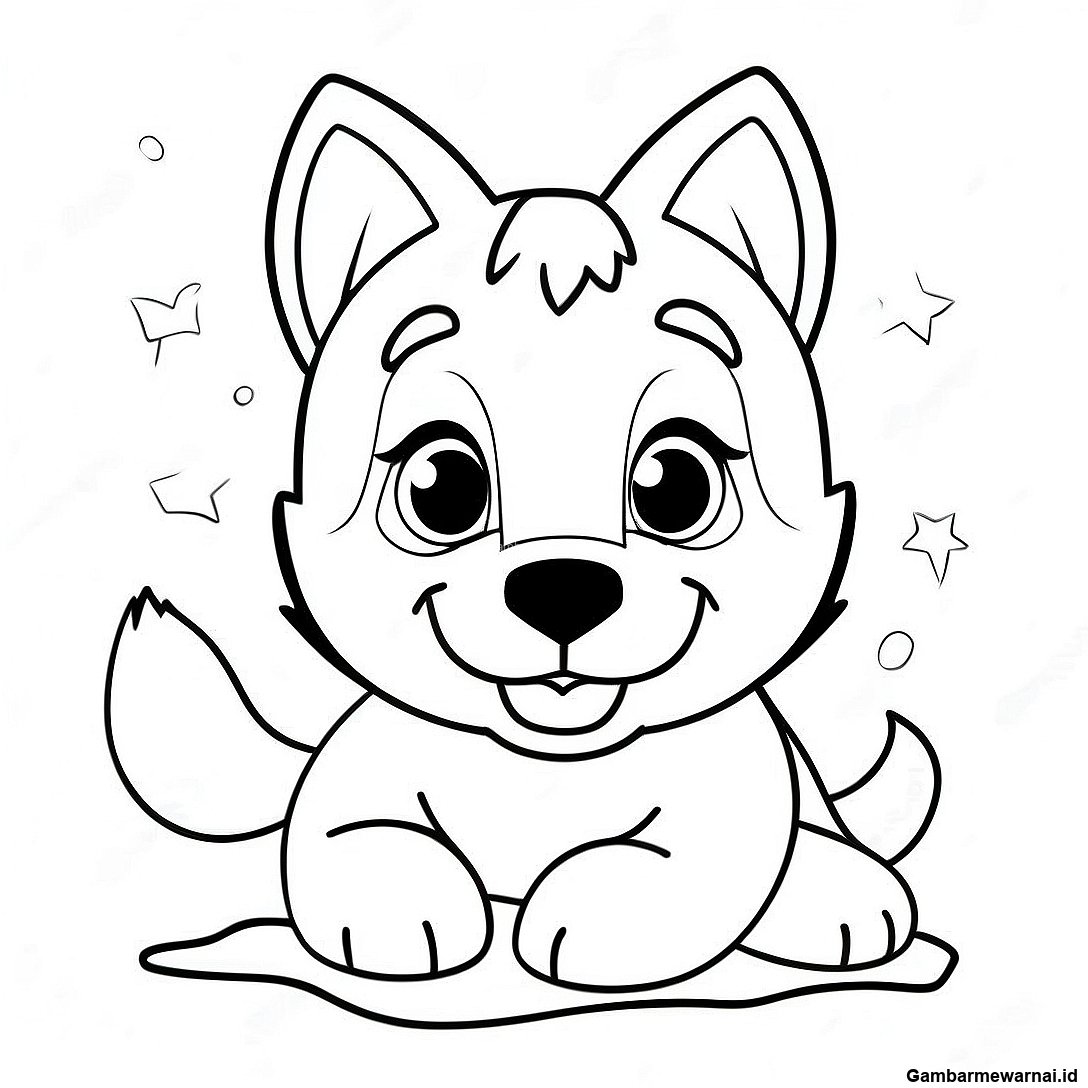 Gambar Mewarnai Anak Anjing Husky Yang Ceria