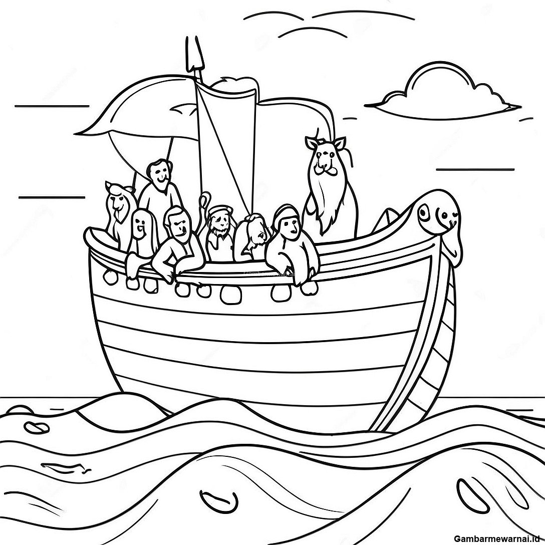 Gambar Mewarnai Bahtera Nuh Berlayar Di Air Tenang