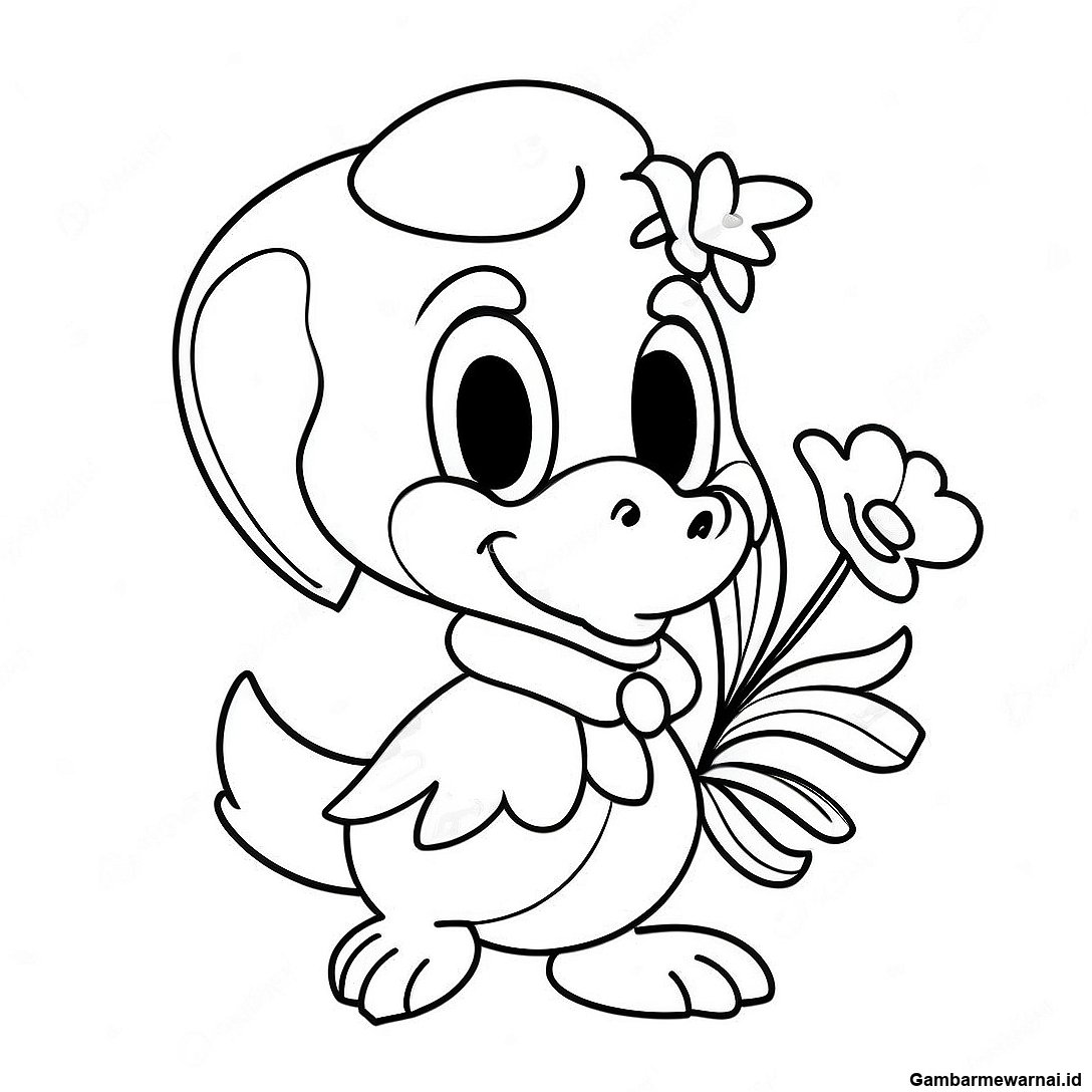 Gambar Mewarnai Daisy Duck Dengan Buket Bunga
