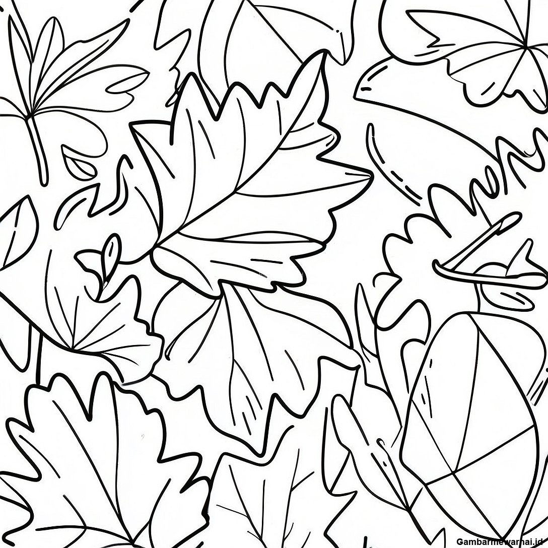 Gambar Mewarnai Daun Musim Gugur Yang Berwarna-Warni