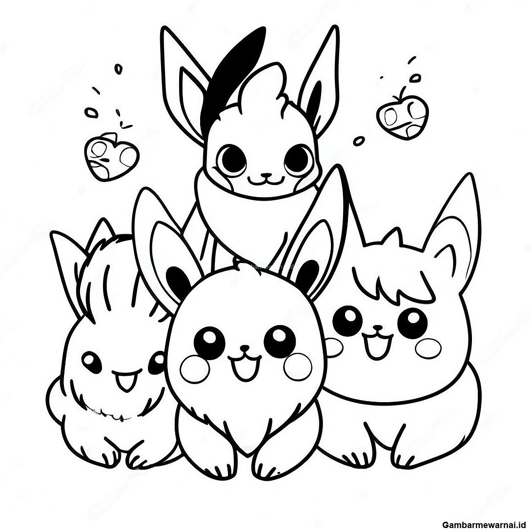 Gambar Mewarnai Eevee Dengan Teman Teman