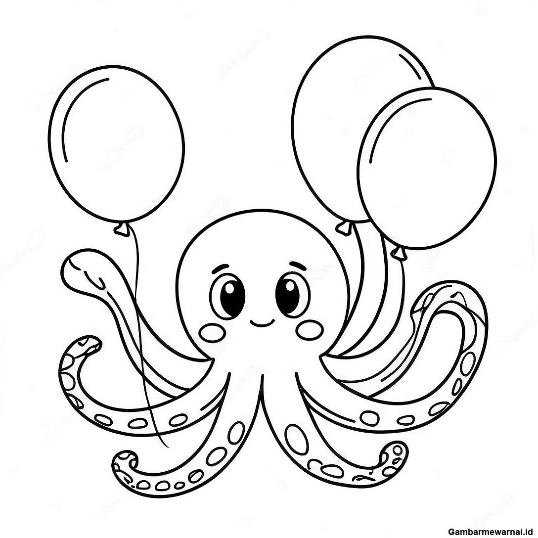 Gambar Mewarnai Gurita Bahagia Dengan Balon