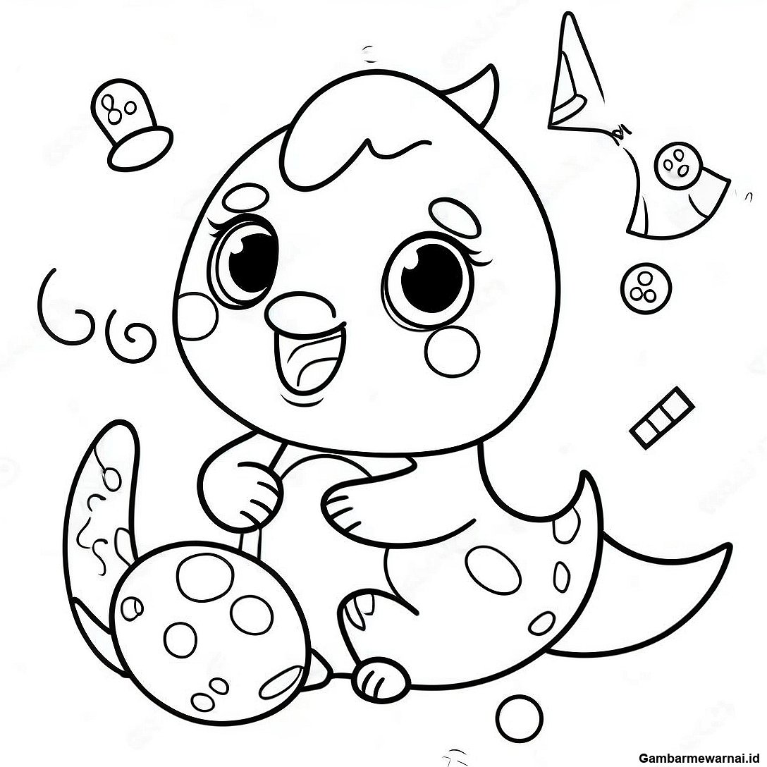 Gambar Mewarnai Hatchimal Bahagia Bermain Dengan Mainan