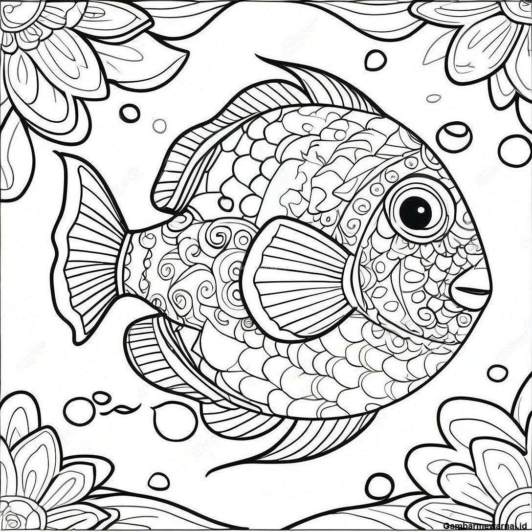 Gambar Mewarnai Ikan Mozaik Yang Cerah