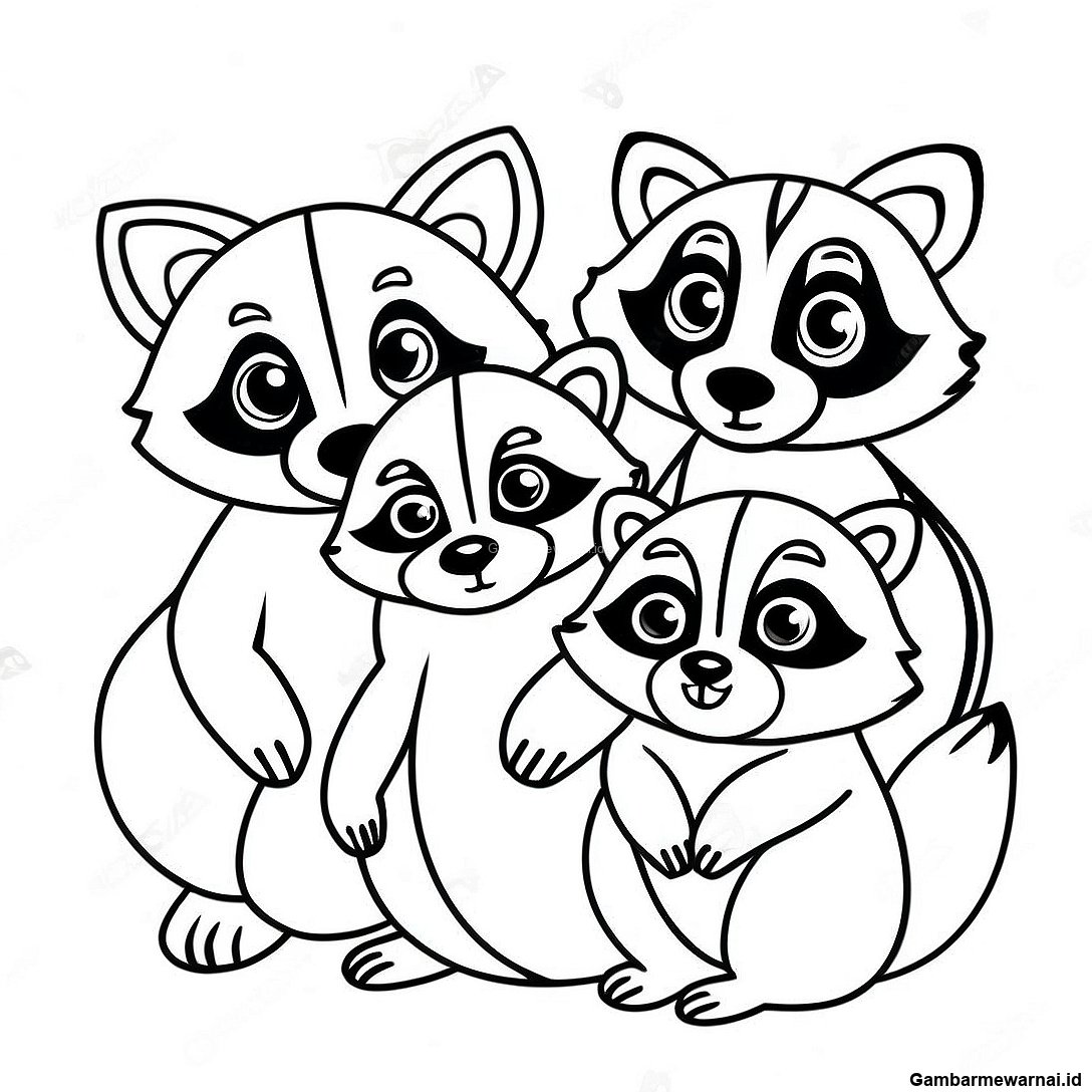 Gambar Mewarnai Keluarga Rakun Yang Menggemaskan