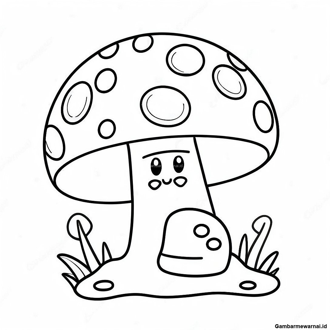 Gambar Mewarnai Kumbang Tersenyum Di Atas Jamur