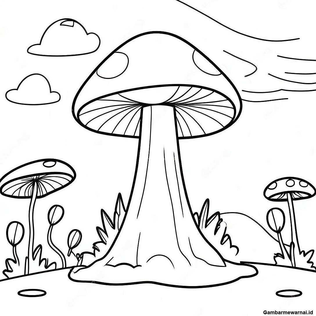 Gambar Mewarnai Lanskap Jamur Raksasa