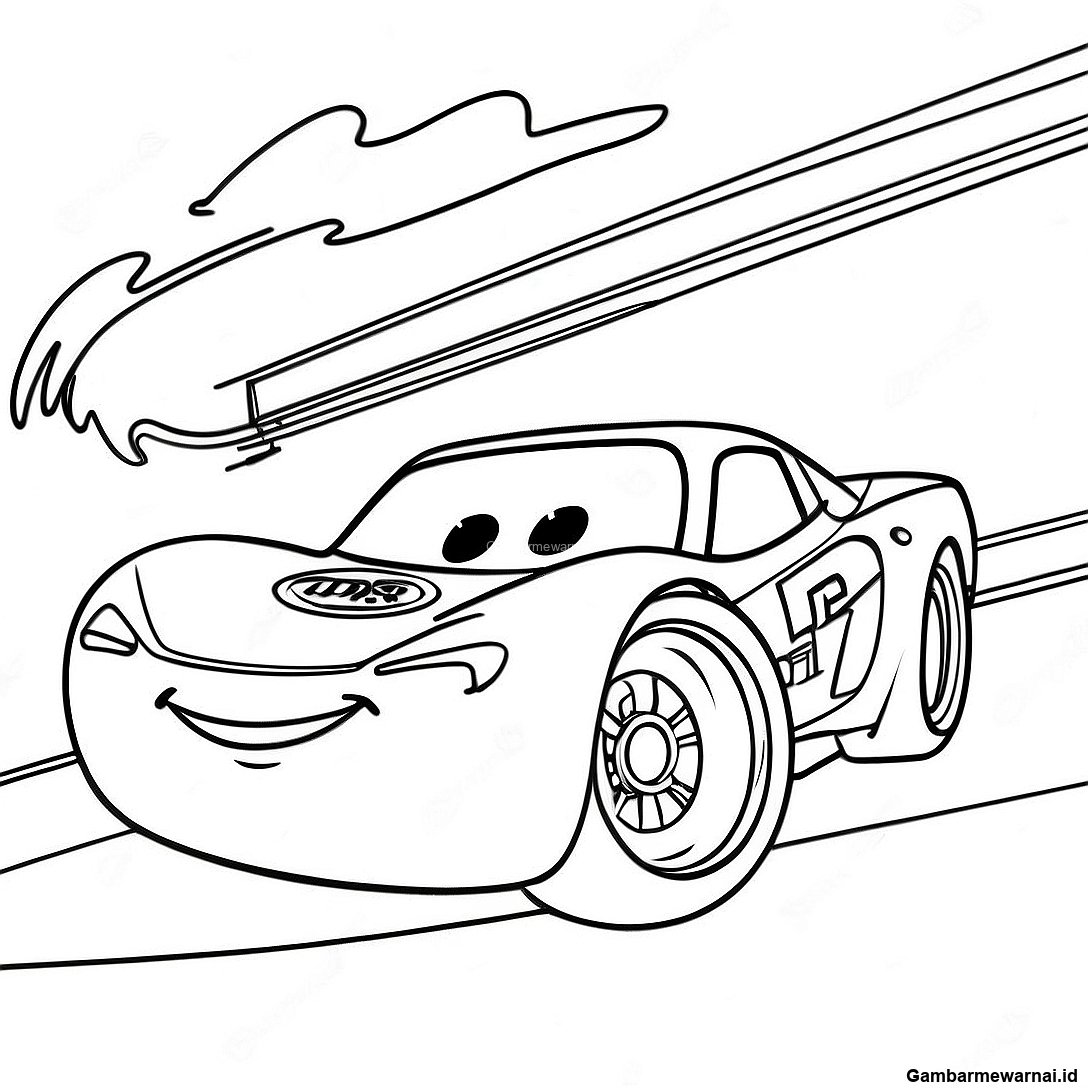 Gambar Mewarnai Lightning Mcqueen Balapan Saat Senja