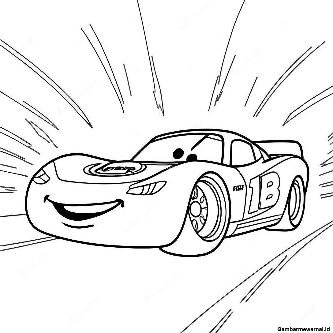 Gambar Mewarnai Lightning Mcqueen Balapan Saat Senja