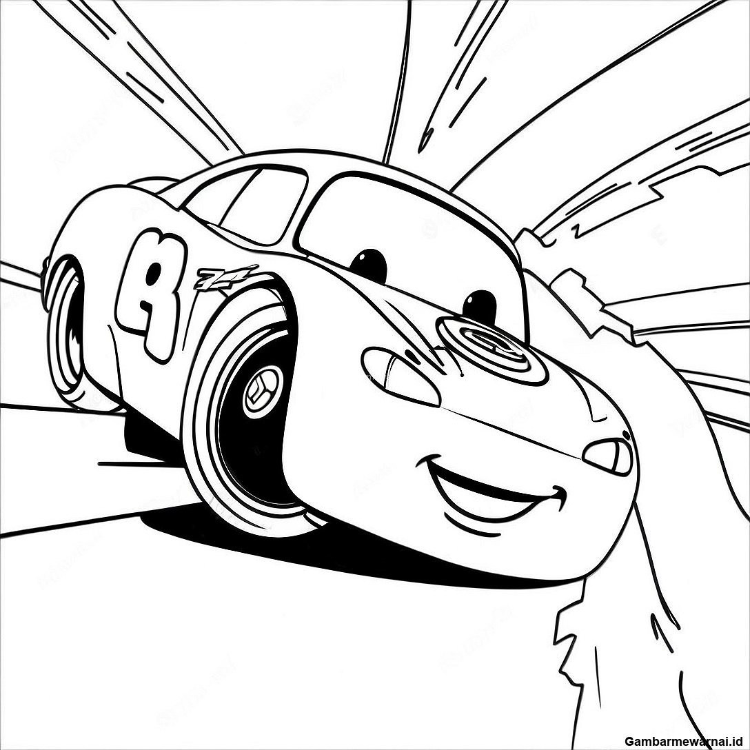 Gambar Mewarnai Lightning Mcqueen Balapan Saat Senja