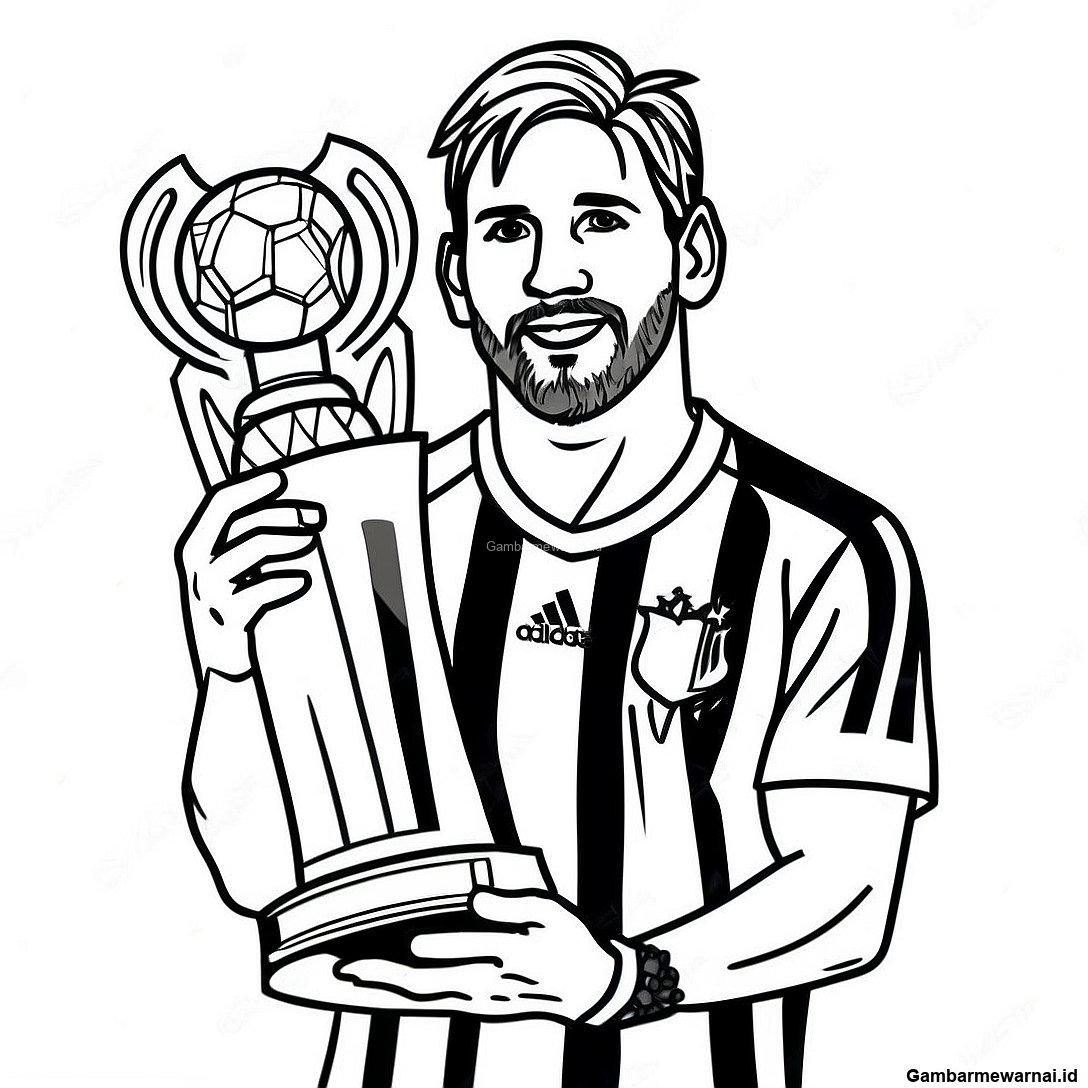 Gambar Mewarnai Lionel Messi Dengan Piala