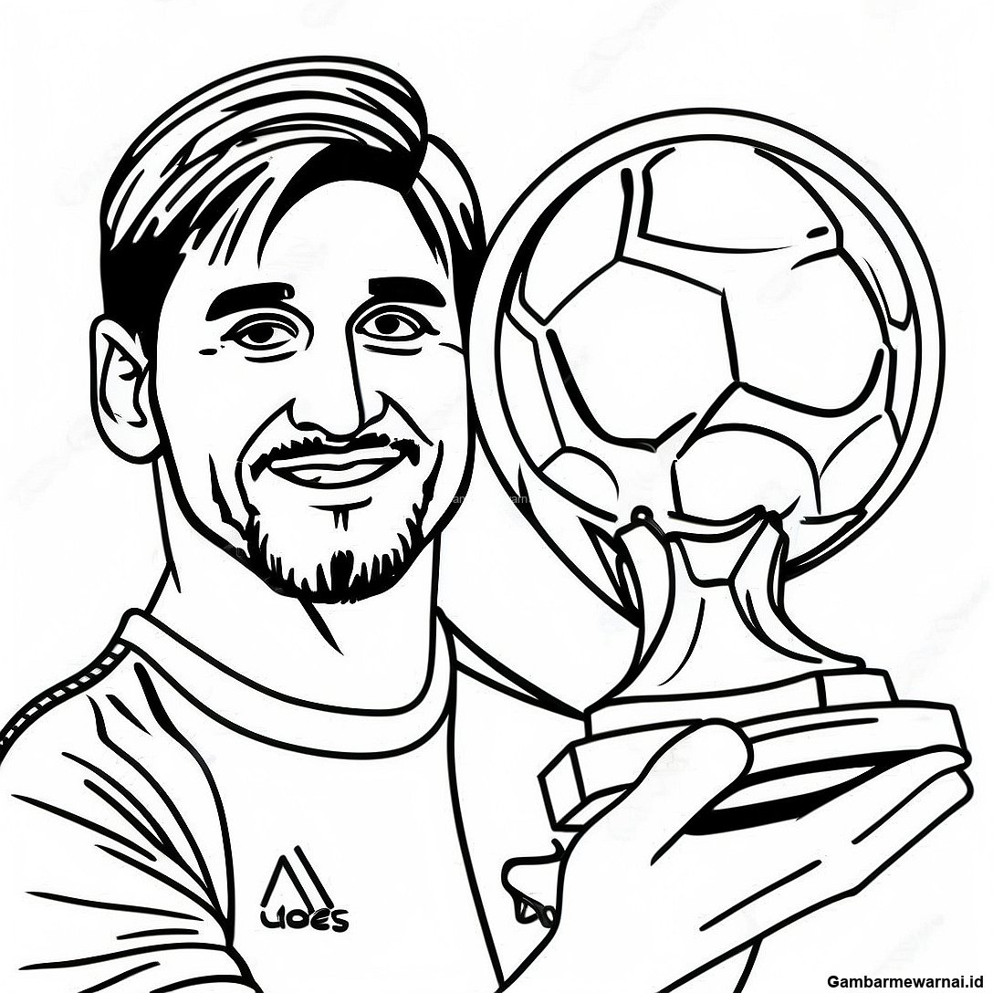 Gambar Mewarnai Lionel Messi Dengan Piala