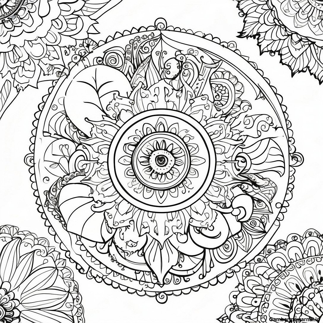 Halaman Mewarnai Mandala Geometris Kreatif
