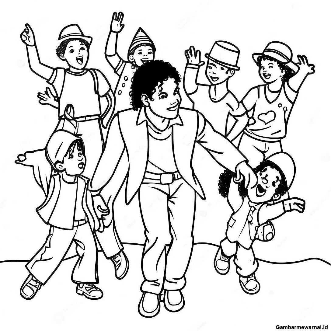 Gambar Mewarnai Michael Jackson Dengan Anak Anak