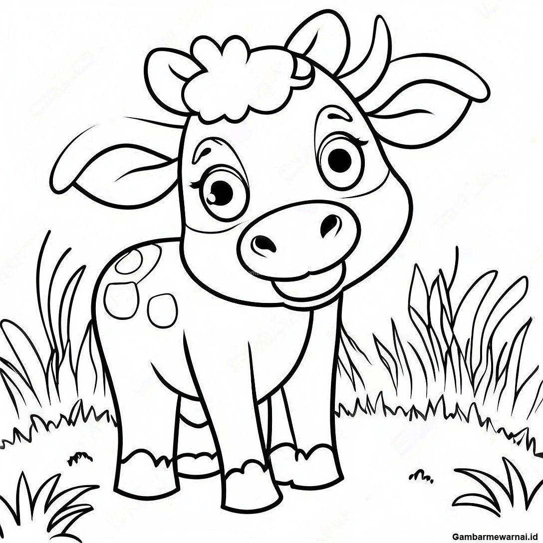 Gambar Mewarnai Sapi Kartun Makan Rumput