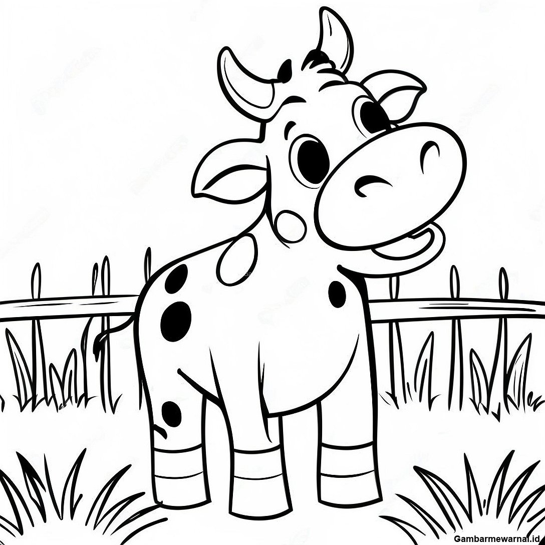 Gambar Mewarnai Sapi Kartun Makan Rumput