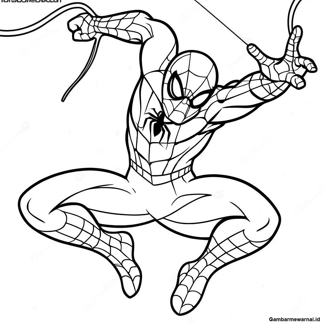 Gambar Mewarnai Spider Man dalam Pose Aksi