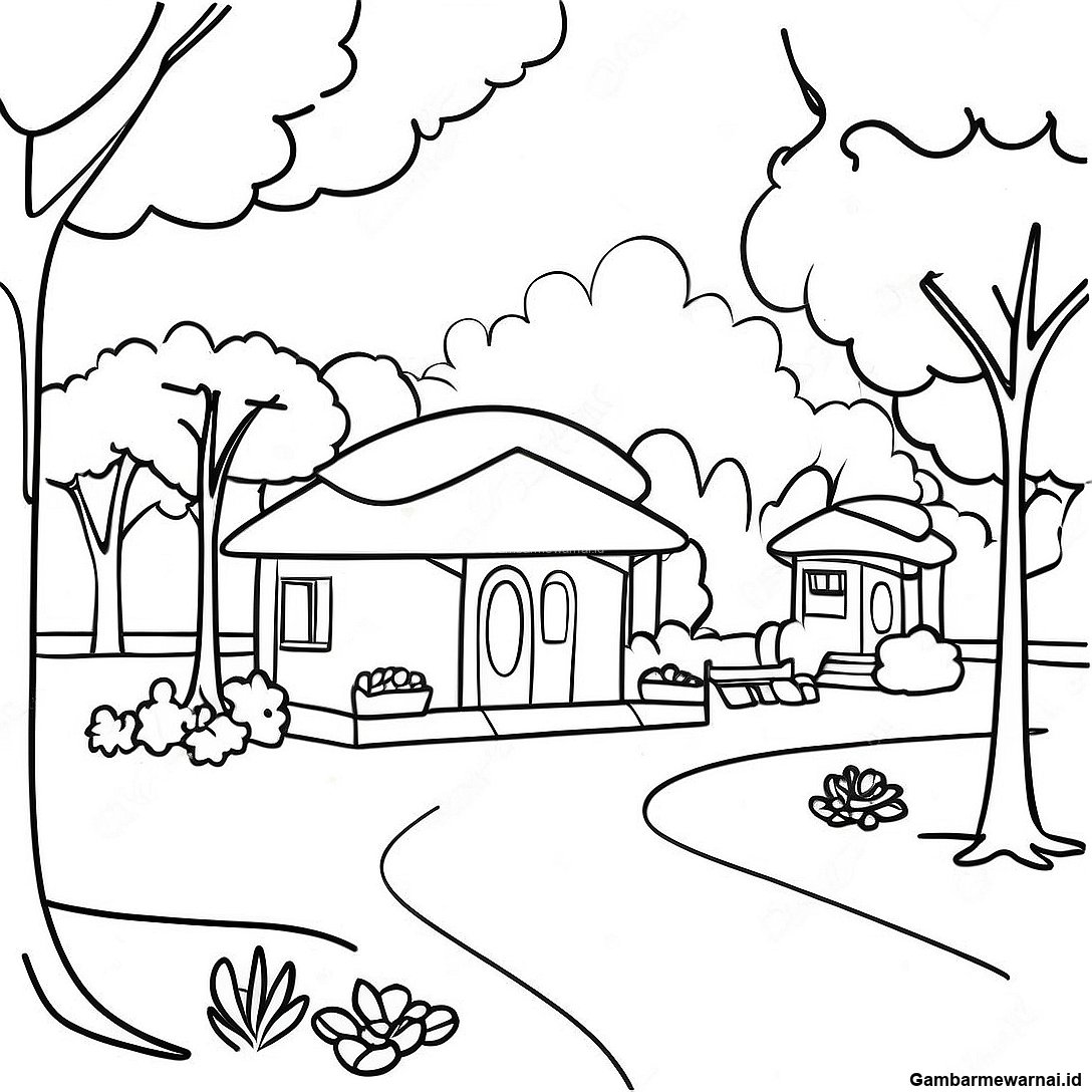 Gambar Mewarnai Taman Lingkungan Yang Ramah