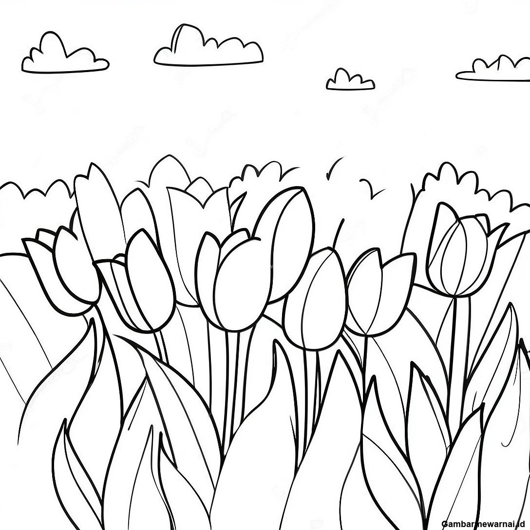 Gambar Mewarnai Taman Tulip Berwarna Warni