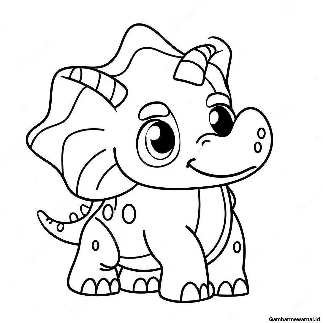 Unduh PDF yang Dapat Dicetak dari Gambar Mewarnai Triceratops Lucu
