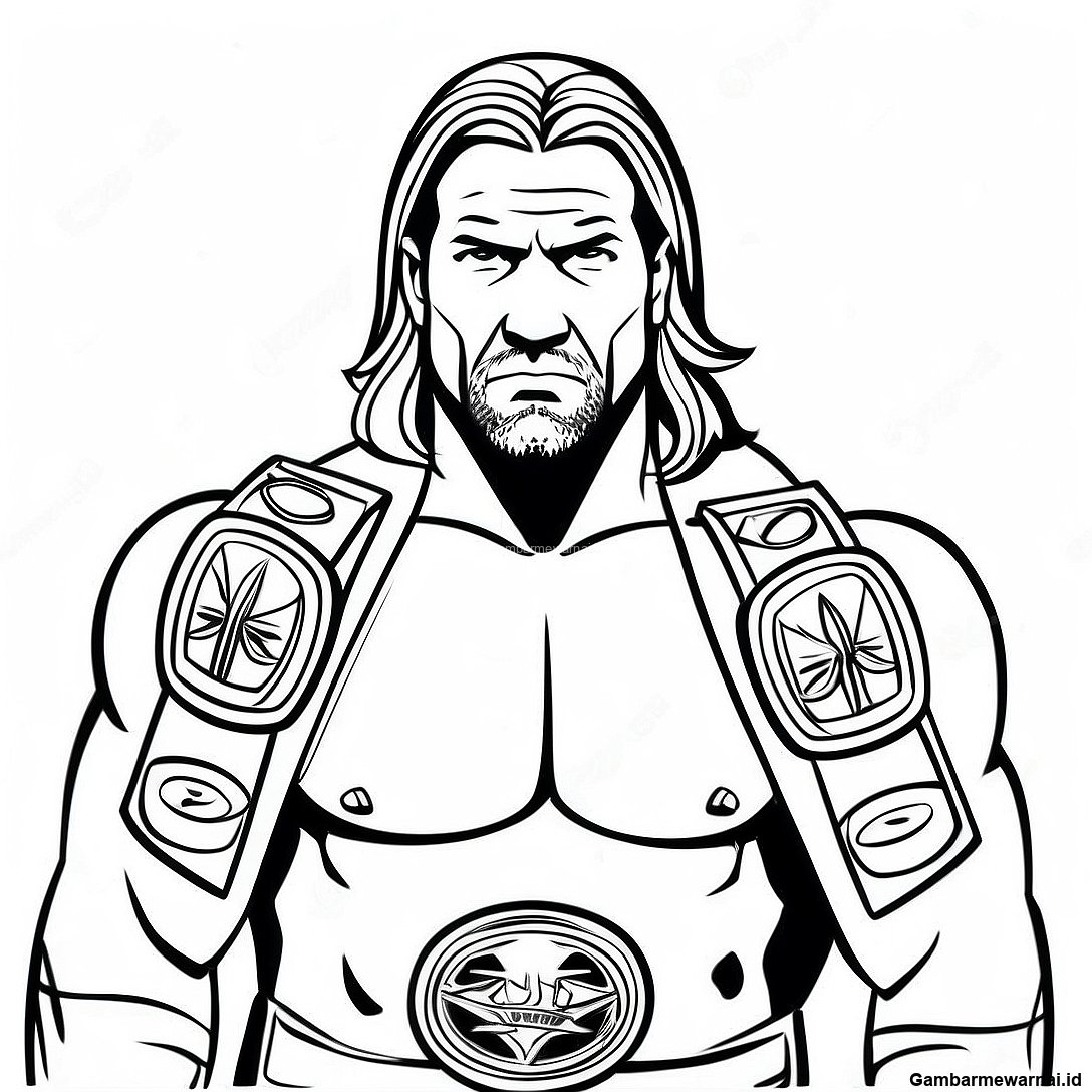 Gambar Mewarnai Triple H Memegang Dua Sabuk