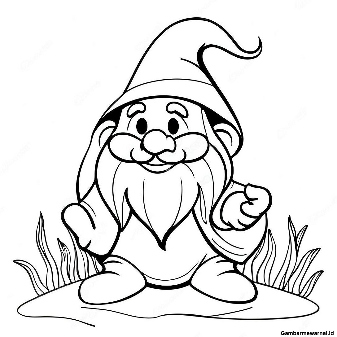 Gnome Dengan Topi Besar Halaman Mewarnai