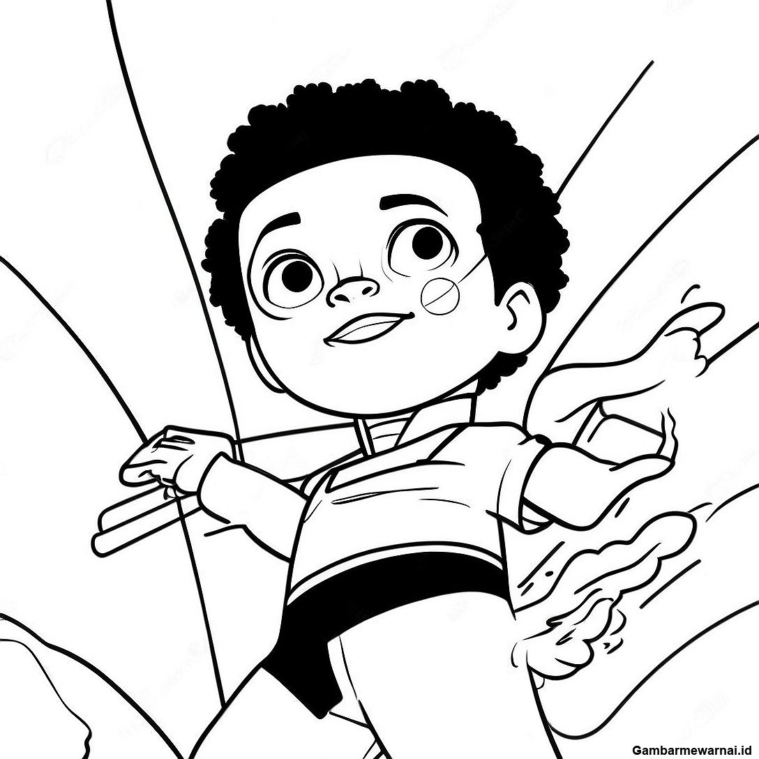 Halaman Mewarnai Adegan Aksi Huey Freeman