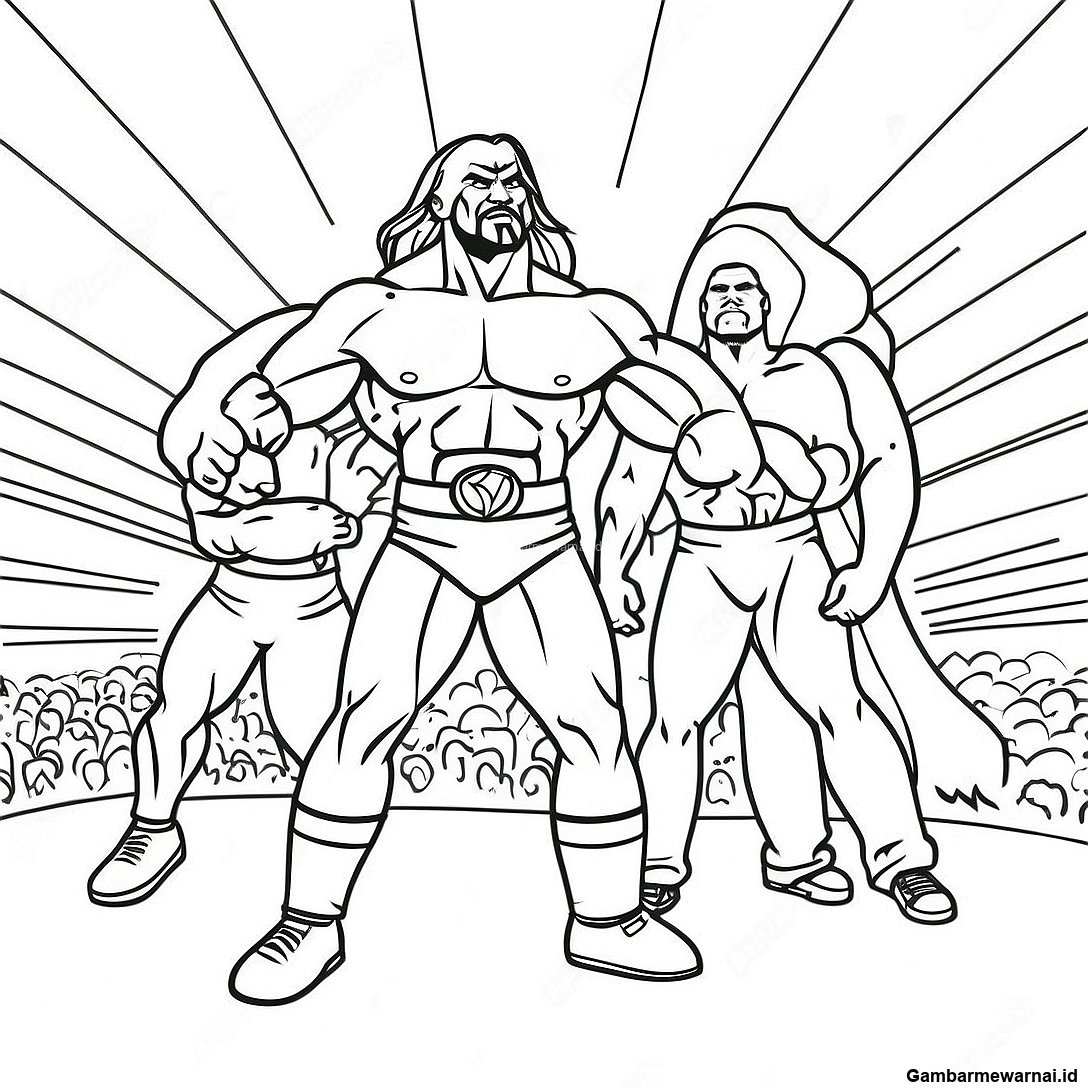 Halaman Mewarnai Adegan Aksi Wwe Yang Dinamis