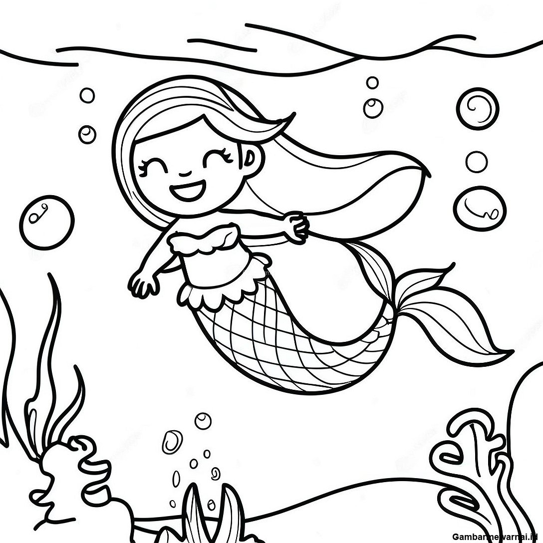 Halaman Mewarnai Adegan Bawah Laut Putri Duyung Yang Terpesona