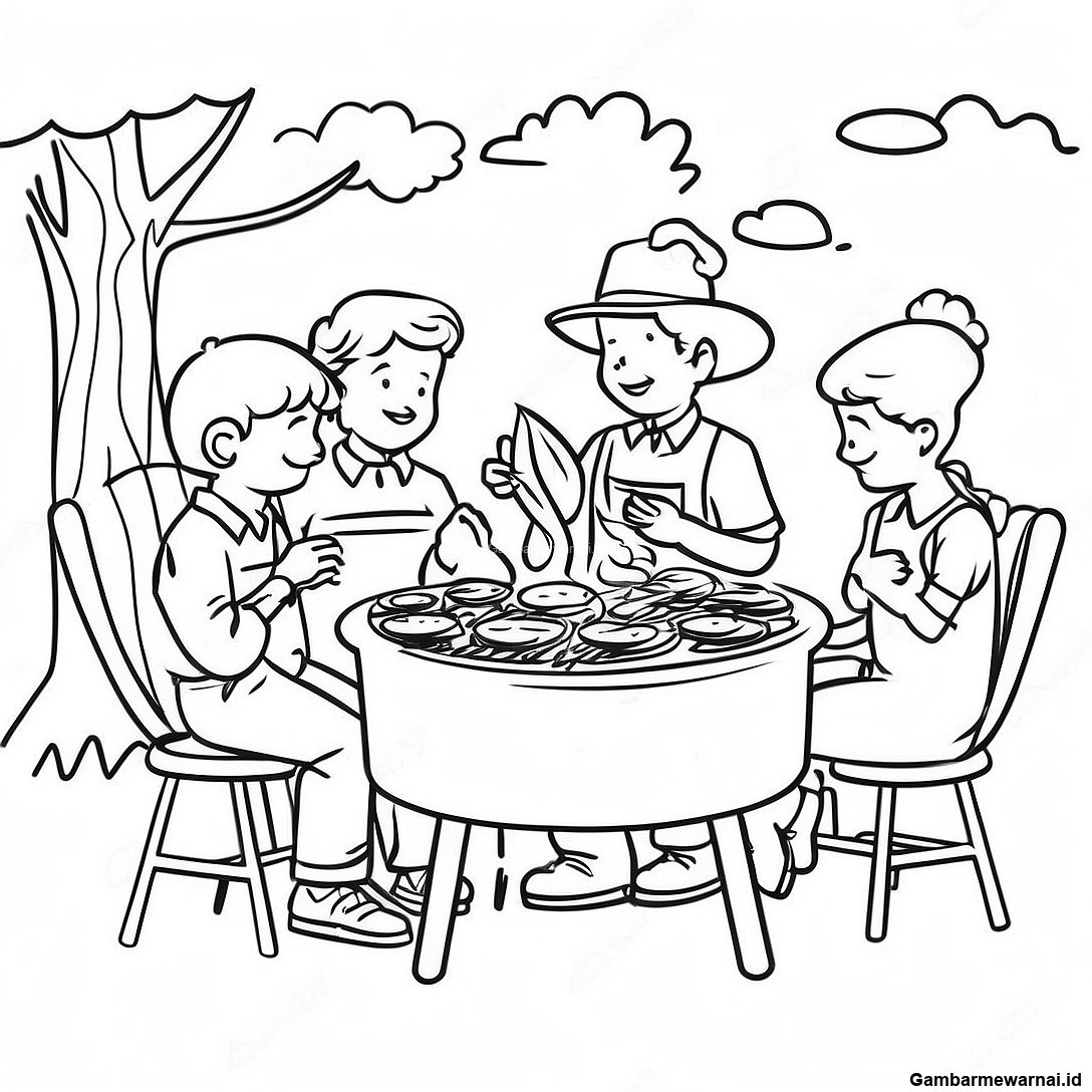 Halaman Mewarnai Adegan Bbq Yang Meriah