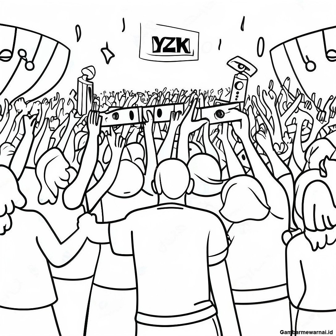Halaman Mewarnai Adegan Festival Musik Y2k