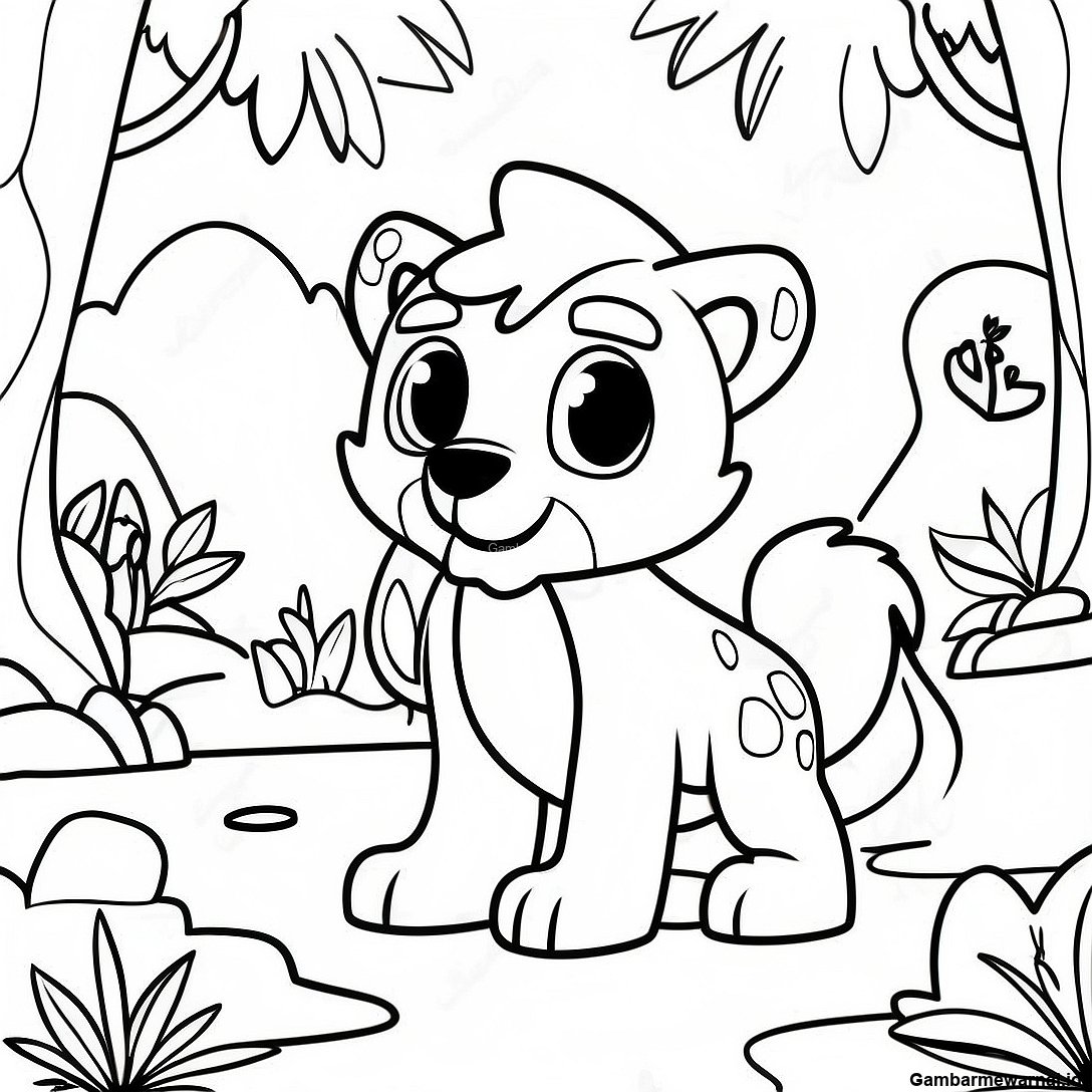 Halaman Mewarnai Adegan Hutan Animal Jam