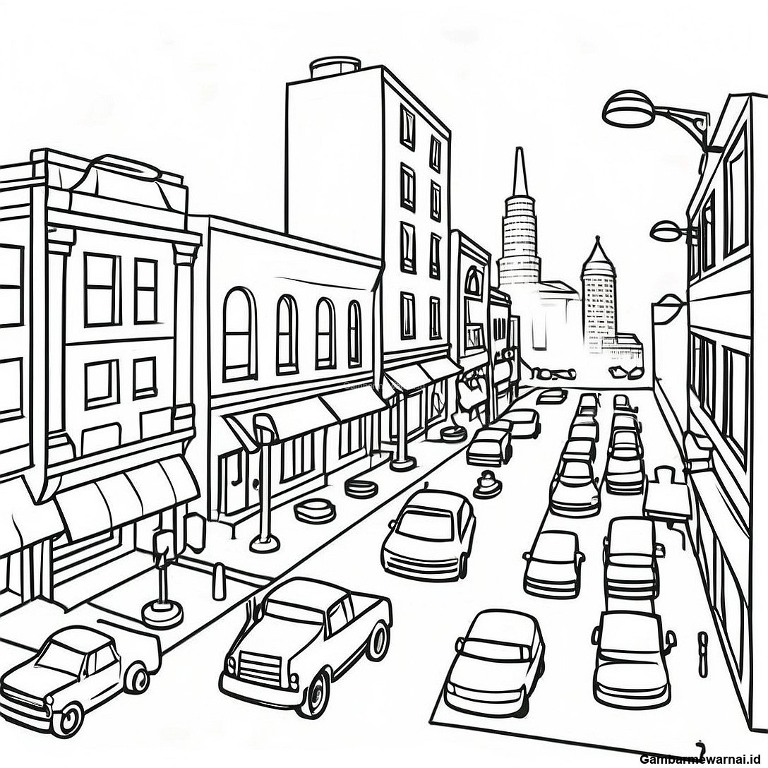 Halaman Mewarnai Adegan Jalan Kota Lego Yang Sibuk