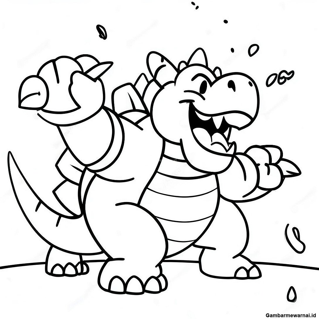 Halaman Mewarnai Adegan Pertarungan Bowser Yang Seru