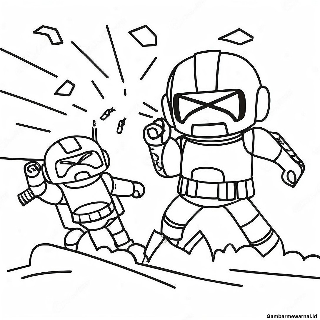 Halaman Mewarnai Adegan Pertempuran Miniforce