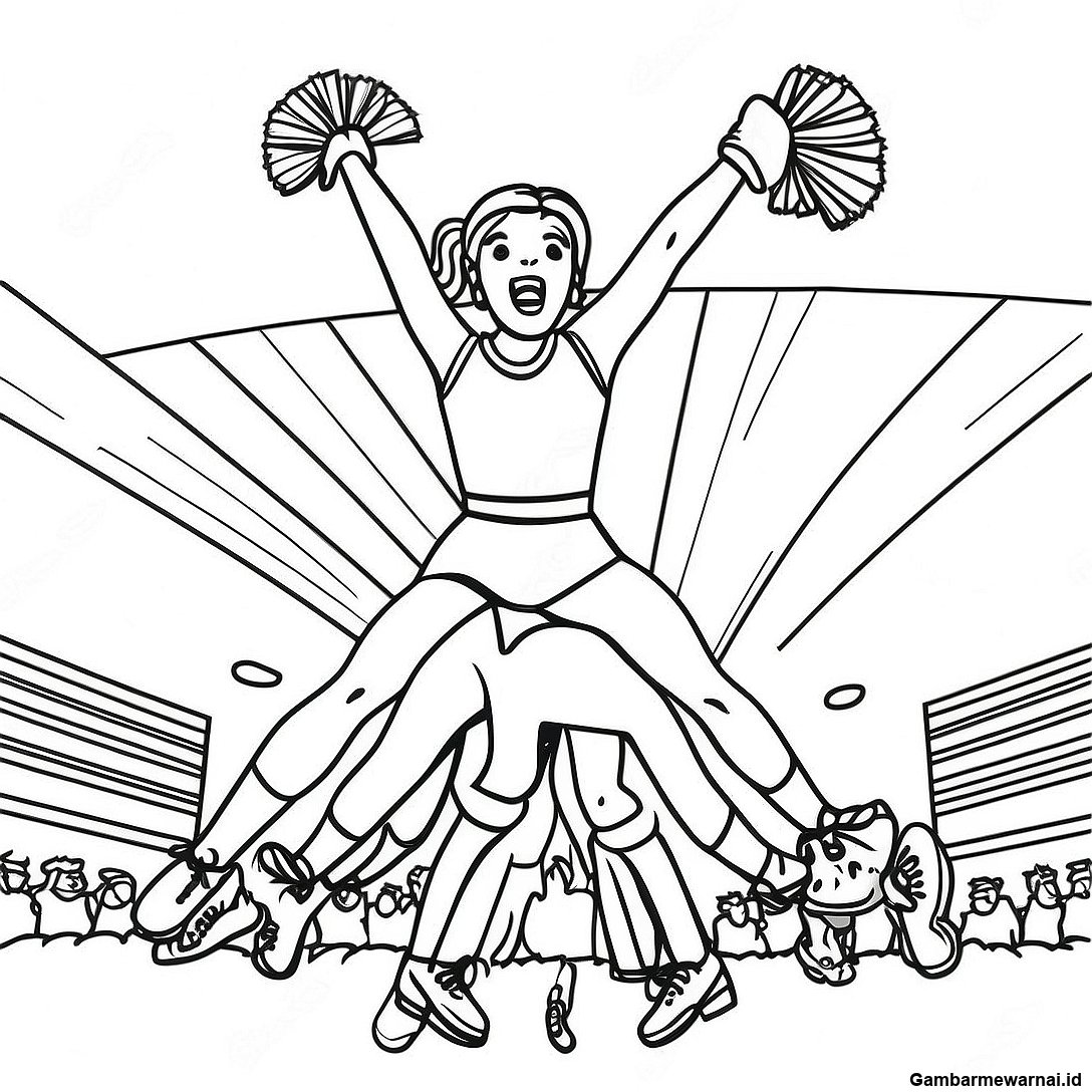 Halaman Mewarnai Aksi Pemandu Sorak Dinamis