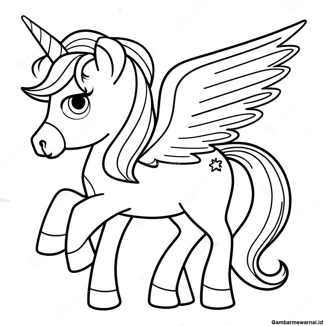 Halaman Mewarnai Unicorn Elegan dengan Surai Berkilau