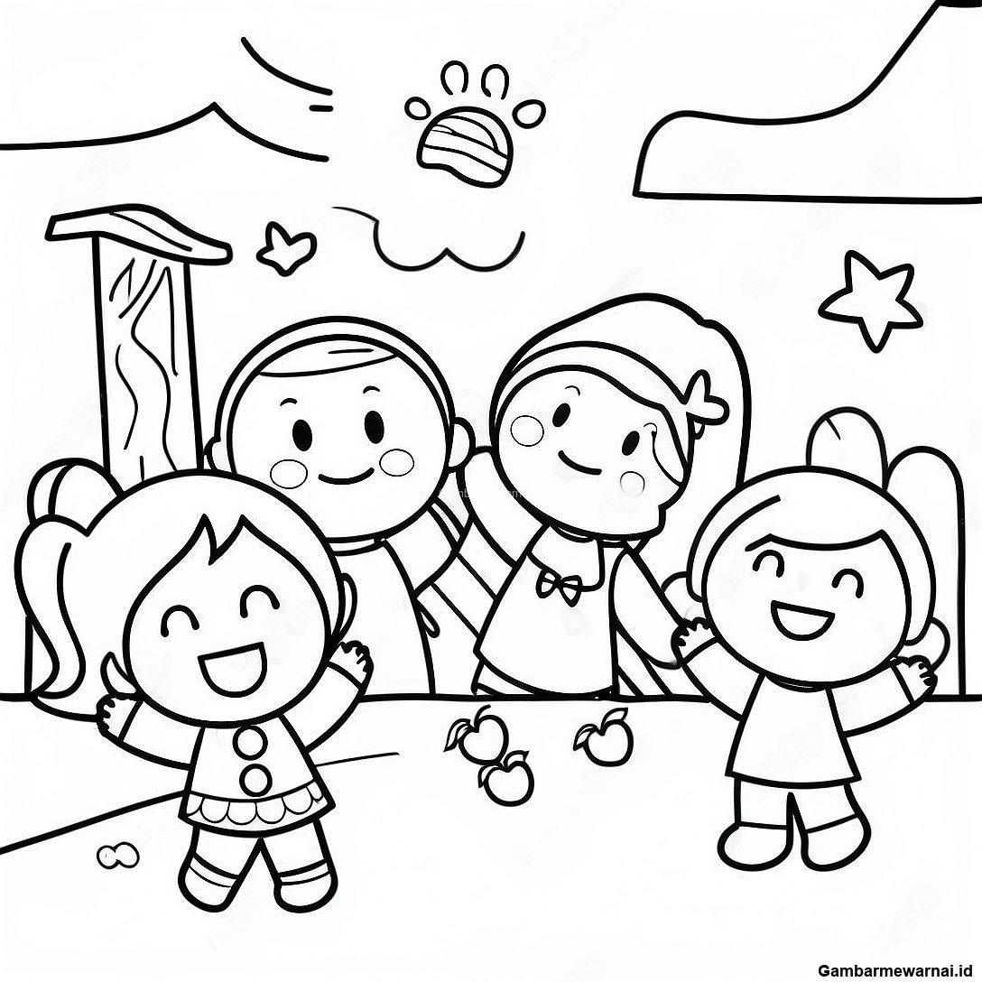 Halaman Mewarnai Anak Anak Tk Yang Bahagia Bermain