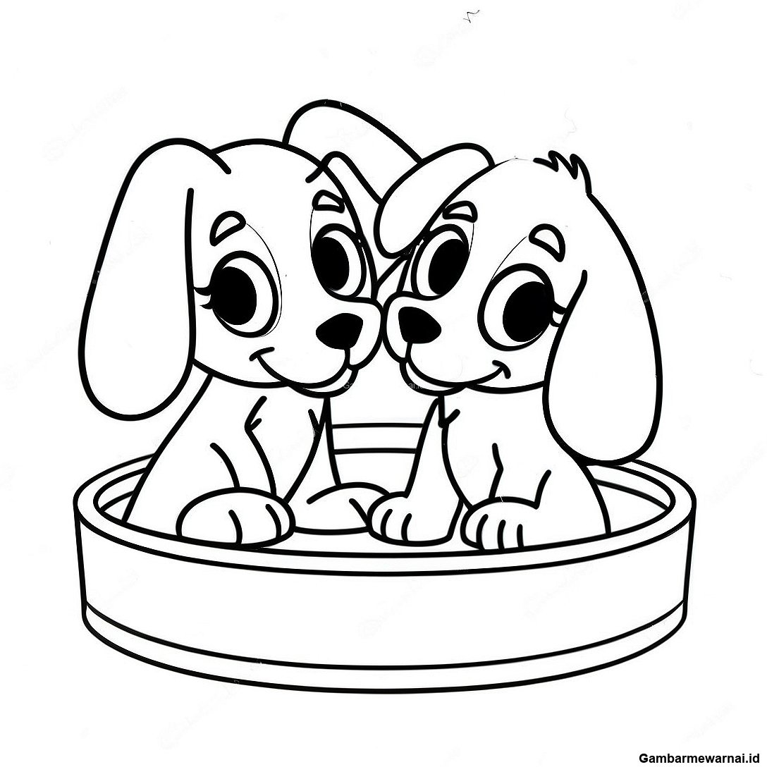 Halaman Mewarnai Anak Anjing Ceria Lady Dan Tramp