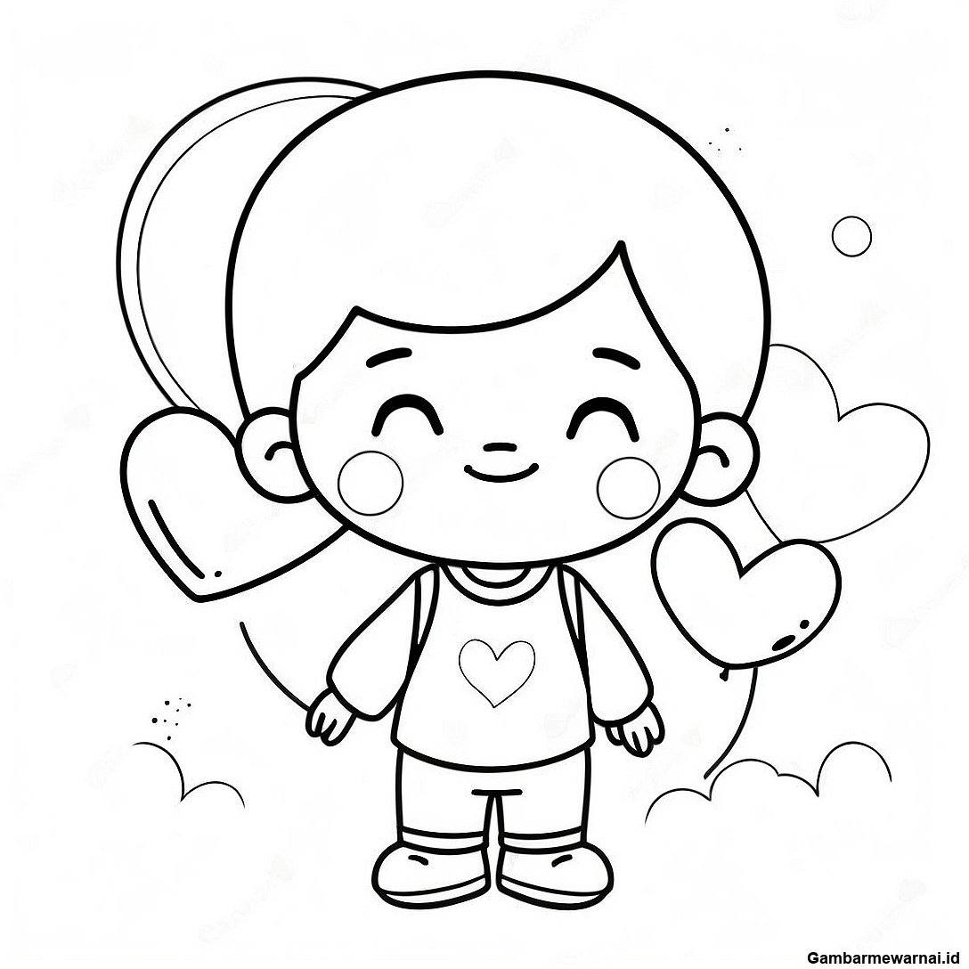 Halaman Mewarnai Anak Laki-Laki Imut Dengan Balon Hati
